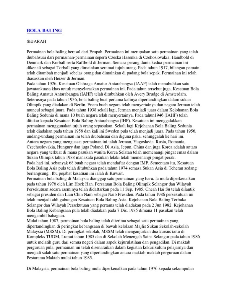 Dalam usaha untuk memasukkan permainan bola baling ke dalam kelendar mssm,. Bola baling boleh dimainkan sama ada di dalam atau luar dewan. Jersi dipakai perlulah bernombor di bahagian depan dan belakang. Gelanggang bola baling dan ukuran padang/gelanggang (kawasan permainan). Kemahiran menjaga gol bola baling. Bola sukan bola jaring memerlukan bola khas untuk bola jaring. Gol dikira apabila keseluruhan bola melepasi garisan gol di antara dua tiang. Saiz bola tampar sama dengan saiz bola sepak tetapi lebih ringan jika. Pakaian dan peralatan bola berukuran standard dan disediakan sendiri oleh pihak . Gelanggang bola baling dan ukuran padang/gelanggang (kawasan permainan) permukaan gelanggang.
